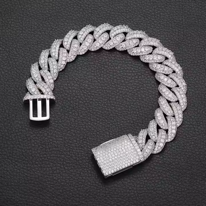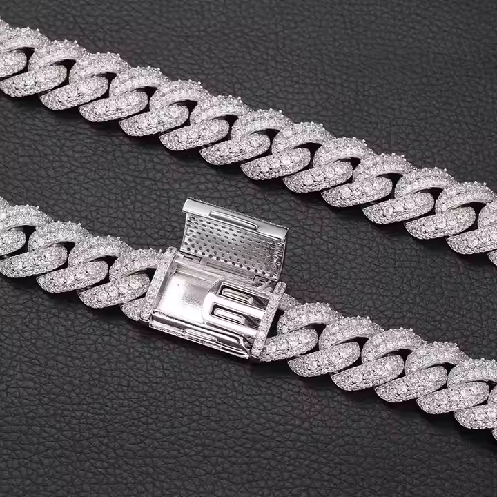 สร้อยคอโซ่เพชรมอยส์ซอไนท์20มม. สุดหรูประดับเพชรแนวสตรีทสวมใส่ได้ทั้งชายและหญิงสไตล์ฮิปฮอป