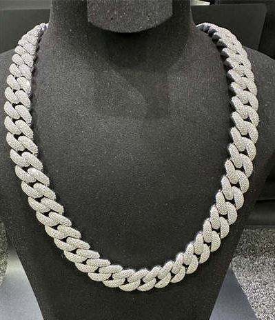 สร้อยคอเพชรแนวไมอามี่ทรงคิวบาน้ำหนัก24มม. สุดสวย: สร้อยคอประดับเพชรแบบฝังเพชรขนาดเล็กอัญมณีสำหรับผู้ชายแร็ปเปอร์