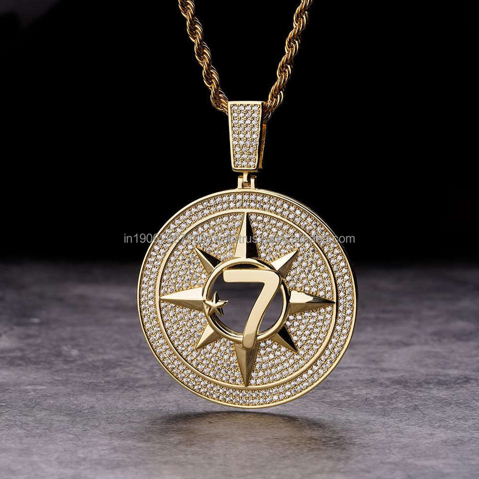 สร้อยคอพร้อมจี้รูปดาว7แฉกประดับด้วยเชือกสีทอง & 925สีเงินประดับเพชรที่ปลูกในแล็บ