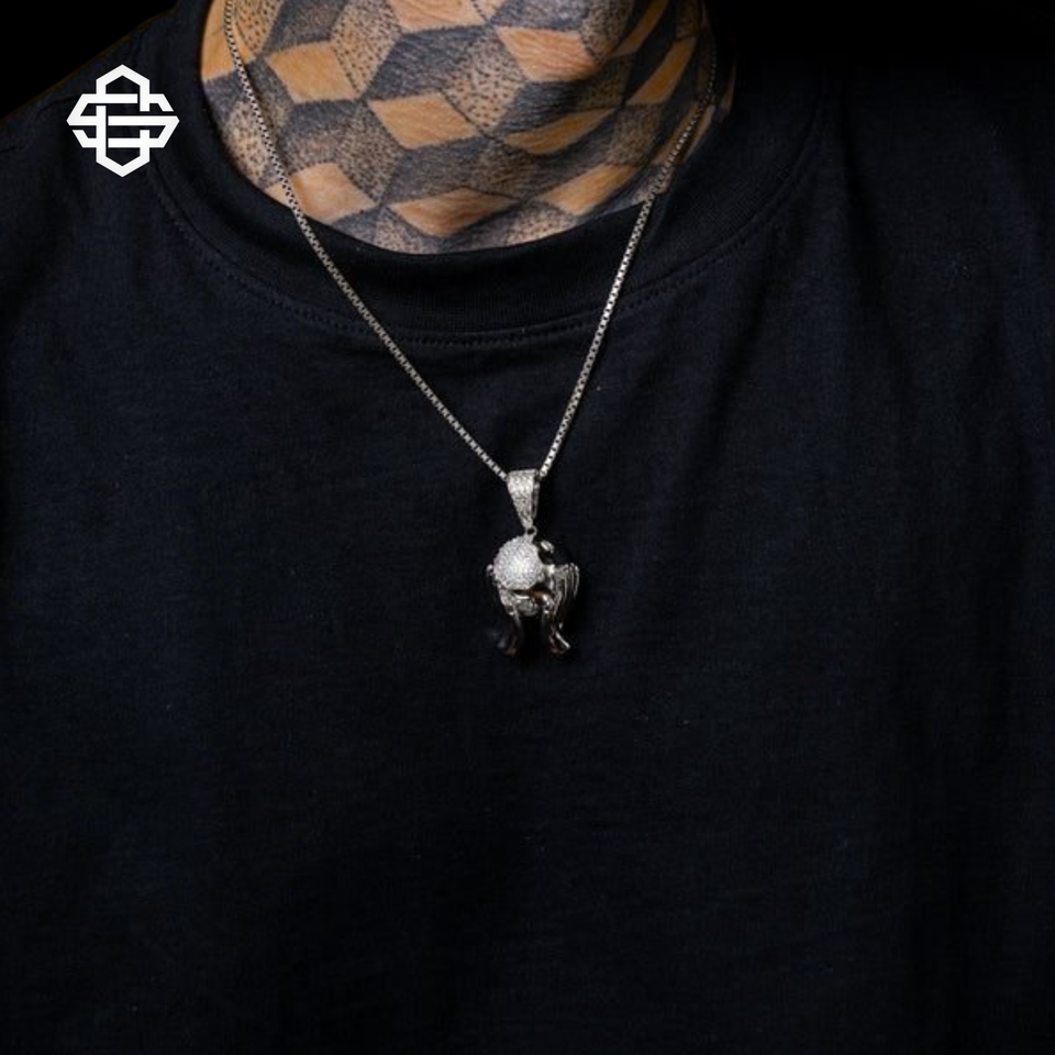 Iced Out Angel Pendant Necklace for Men Luxury Silver Plated Hip Hop Jewelry with Cubic Zirconia Stones Gift Accessory