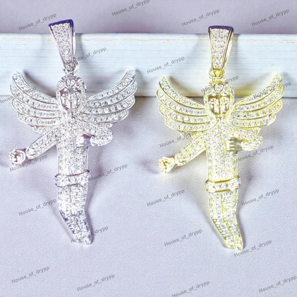 จี้รูปนางฟ้าประดับเพชรโมอิสซาไนต์สีเงิน สไตล์ฮิปฮอป พร้อมปีกประดับอย่างละเอียด สร้อยคอสุดหรู