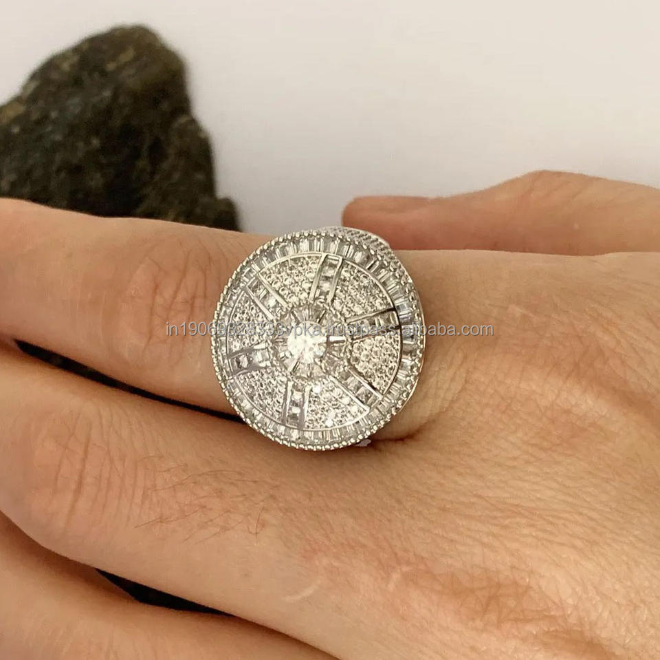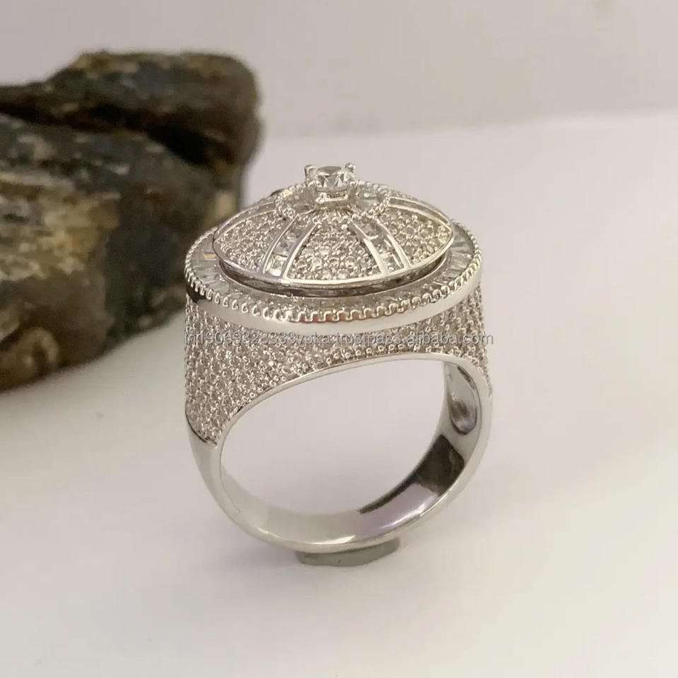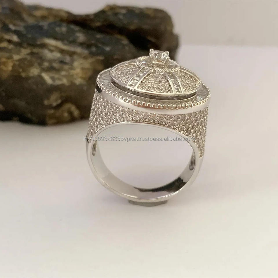 แหวนหมุนคลัสเตอร์ประดับเพชรโมอิสซาไนต์แบบ Iced Out ทำจากเงินแท้ 925 สำหรับผู้ชาย สไตล์ฮิปฮอป เหมาะเป็นของขวัญหมั้น