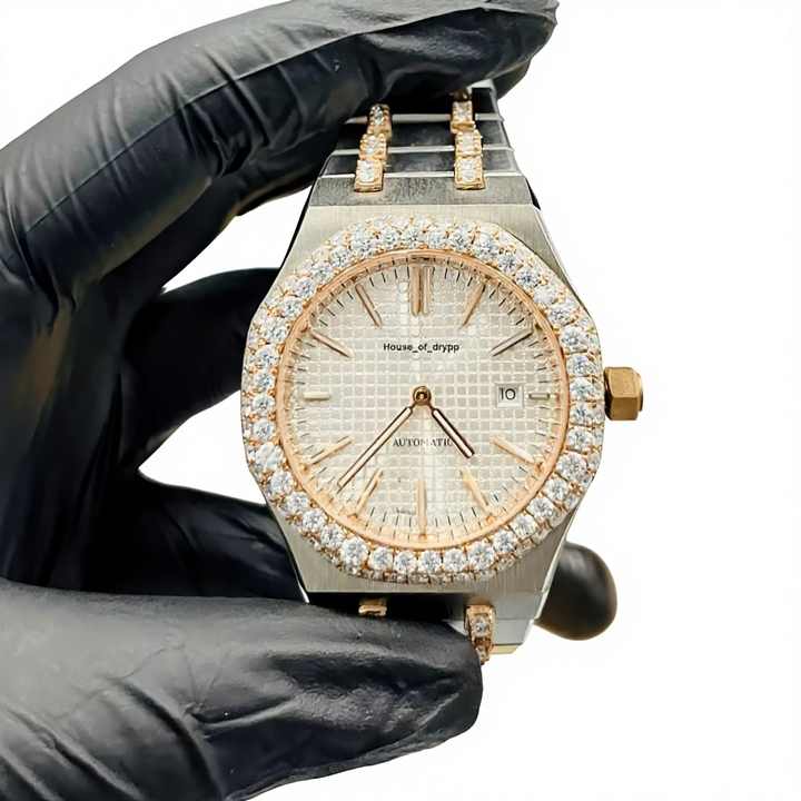 นาฬิกาอัตโนมัติแบบ Iced Out ตัวเรือนสแตนเลส ประดับเพชรโมอิสซาไนต์ ดีไซน์หรูหรา สไตล์ฮิปฮอป ของขวัญสุดเท่สำหรับทุกเพศ