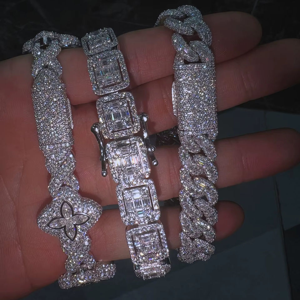ชุดกำไลข้อมือแบบ Cuban Link ประดับเพชรทรงบาแกตต์ VVS มอยส์ซาไนต์ เงินแท้ สินค้าขายดีสุดฮิต สไตล์ฮิปฮอป หรูหรา โดดเด่น