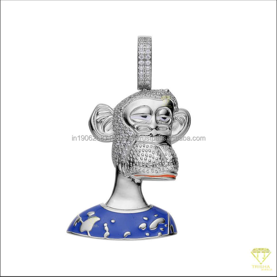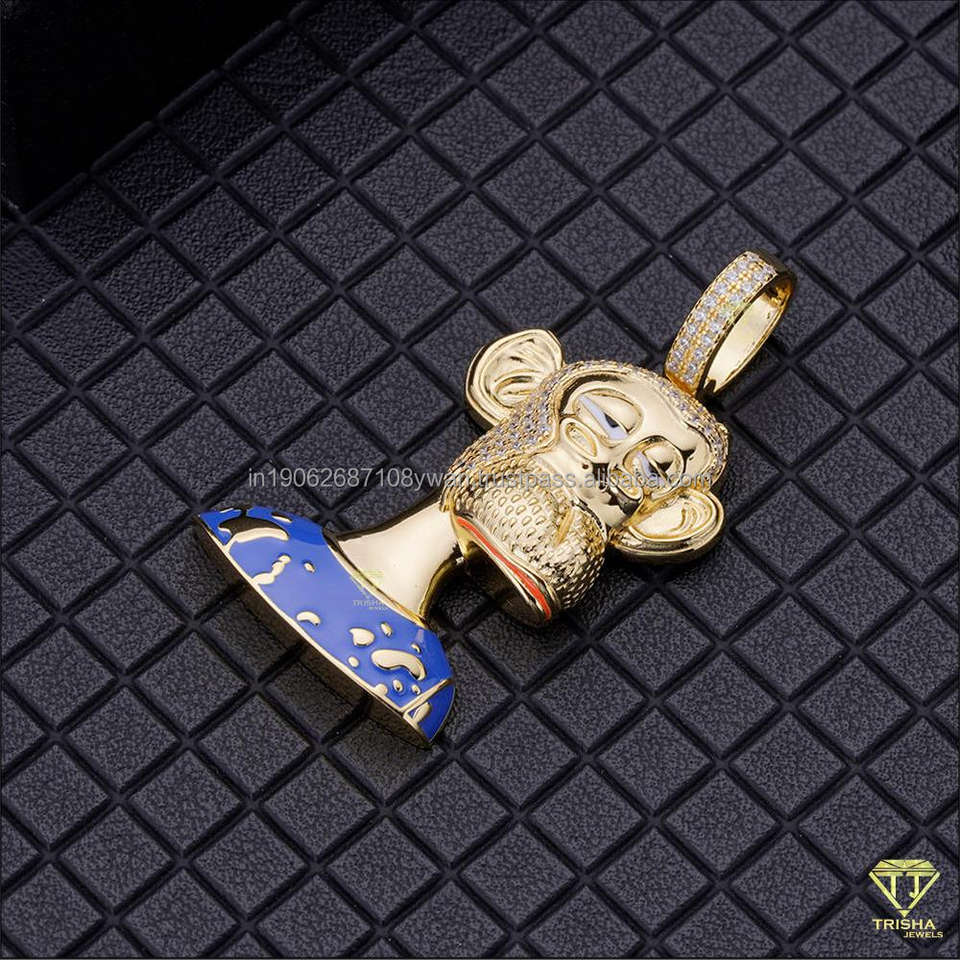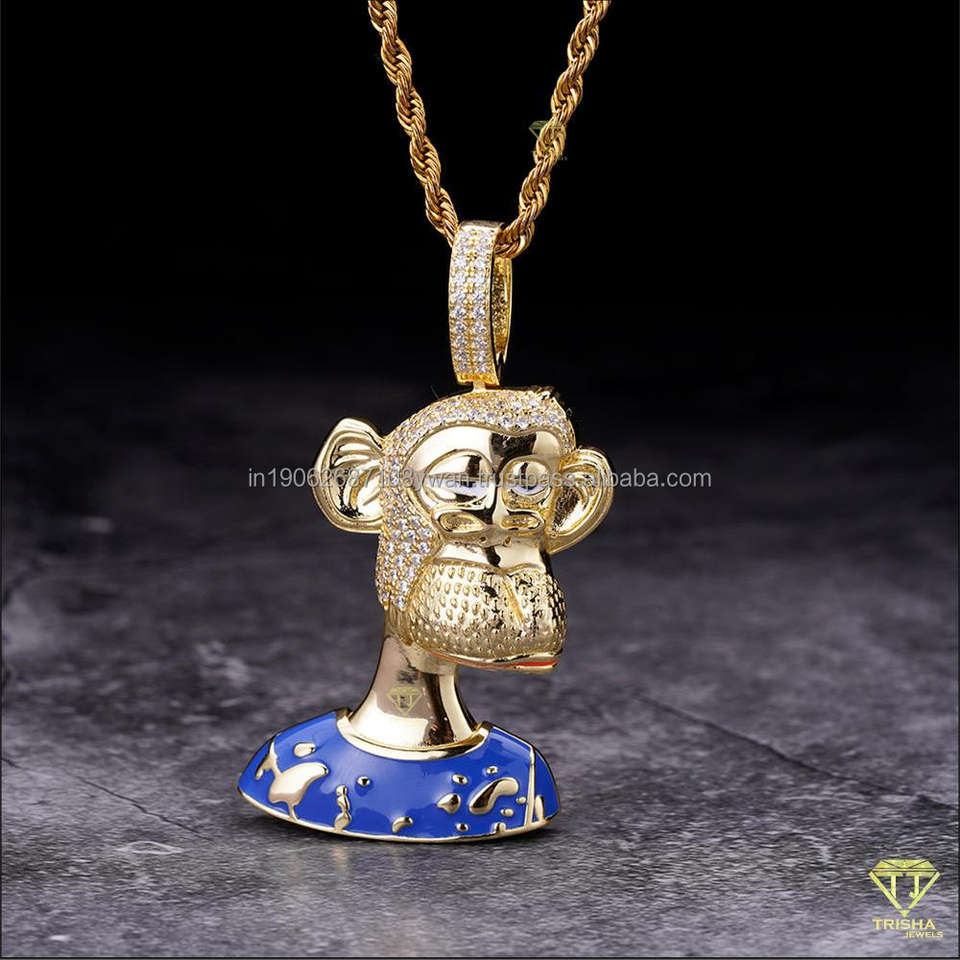 จี้คอสีทองและสีเงินรูปลิงจิวเวลรี่เสื้อเคลือบสีฟ้า VVS แล็บปลูกเพชรฮิปฮอป