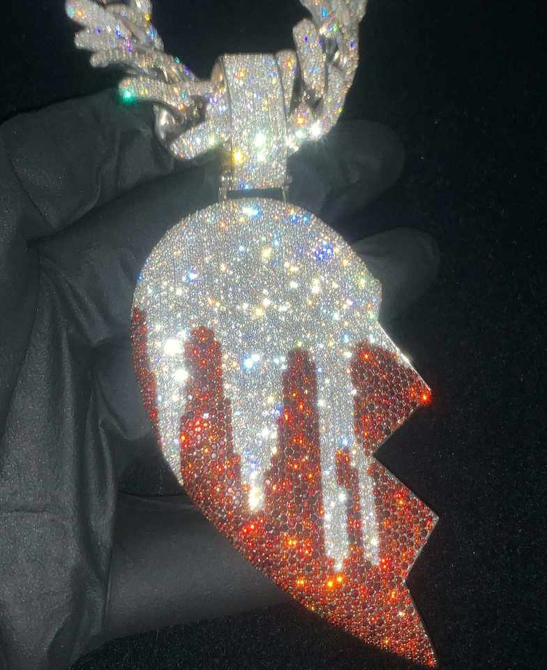 จี้เพชรโมอิสซาไนต์ทรงหัวใจแตก ประดับอักษรขนาดใหญ่ ลายการ์ตูน วงกลม แบบ 3 มิติ สไตล์ฮิปฮอป สำหรับแร็ปเปอร์ ทำจากเงินแท้ 925