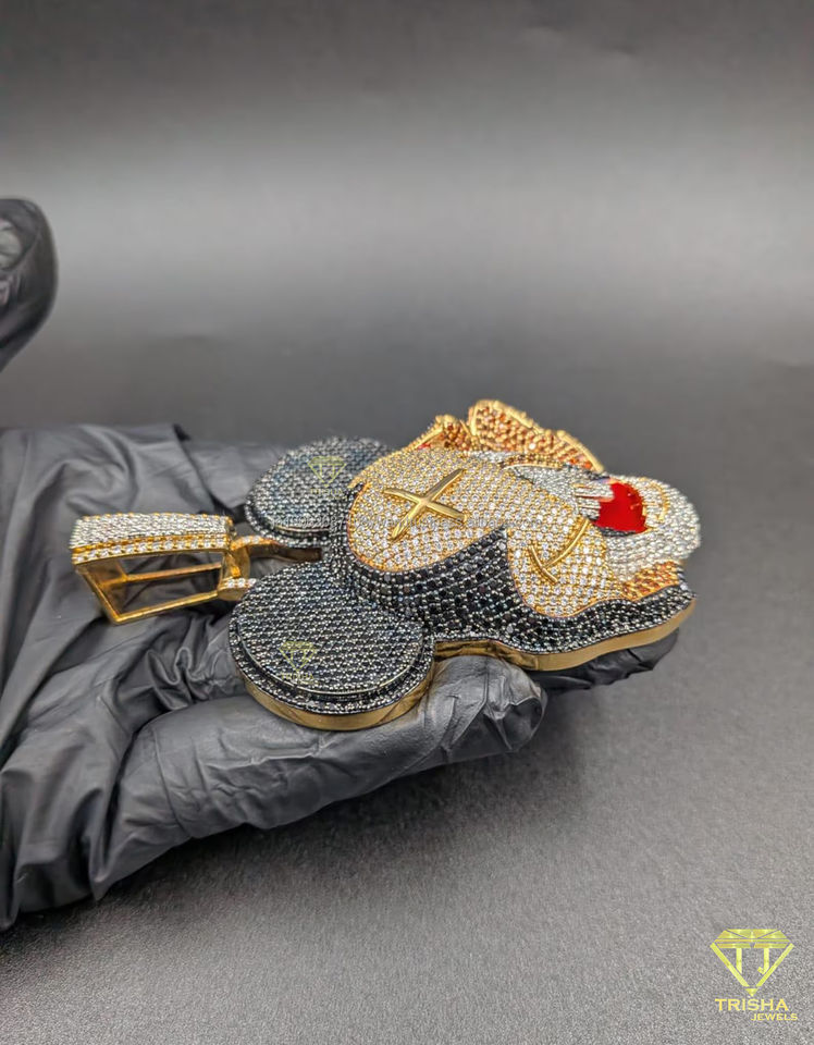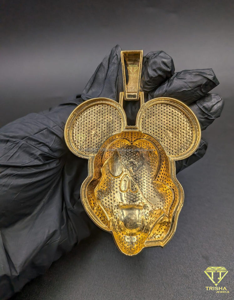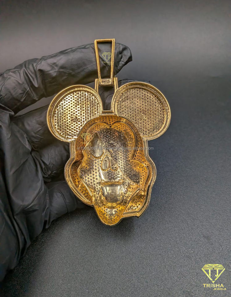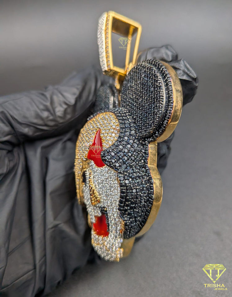 จี้รูปหนูการ์ตูนประดับเพชรพร้อมหัวใจสีแดง สไตล์ฮิปฮอปสุดหรู จี้ฮิปฮอปสุดเทรนดี้
