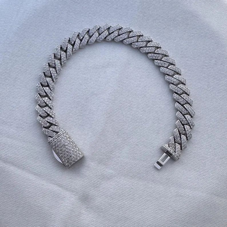 สร้อยข้อมือคิวบาลิงค์แบบไอซ์เอาท์ ประดับเพชรโมอิสซาไนต์ เงินแท้ 925 ดีไซน์หรูหรา สไตล์ฮิปฮอป พร้อมตัวล็อคแบบกล่อง สำหรับผู้ชาย