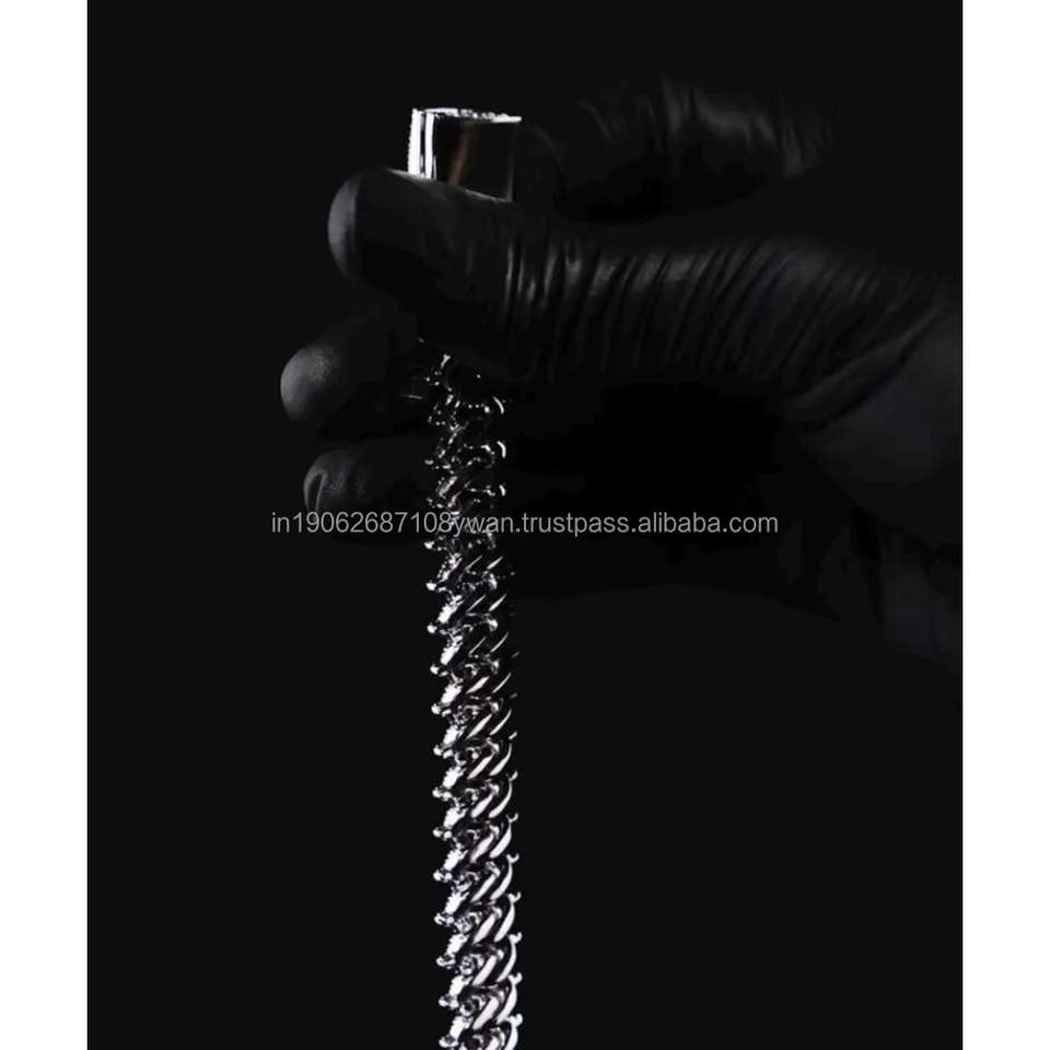 สร้อยข้อมือแบบถักสไตล์คิวบาประดับอัญมณีแบบฮิปฮอปสำหรับผู้ชายสร้อยข้อมือเพชรโมอิสซาไนต์สำหรับเป็นของขวัญแฟชั่นในเมืองสีเงิน