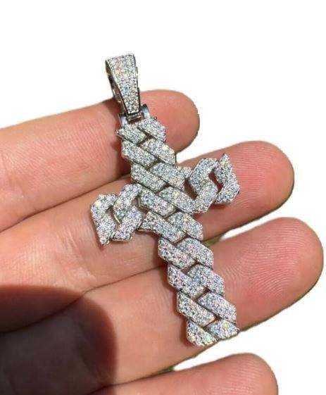 จี้กางเขนแบบ Cuban Link ประดับเพชร VVS Moissanite สไตล์ฮิปฮอป เครื่องประดับหรูหรา สร้อยคอแห่งศรัทธา