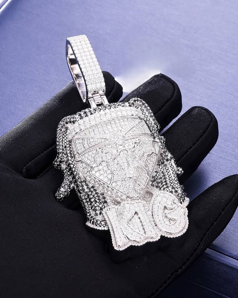 จี้ห้อยคอฮิปฮอปดีไซน์ 3 มิติแบบกำหนดเอง ประดับเพชรโมอิสซาไนต์สีดำ เกรด VVS ชุบโรเดียม ทันสมัย