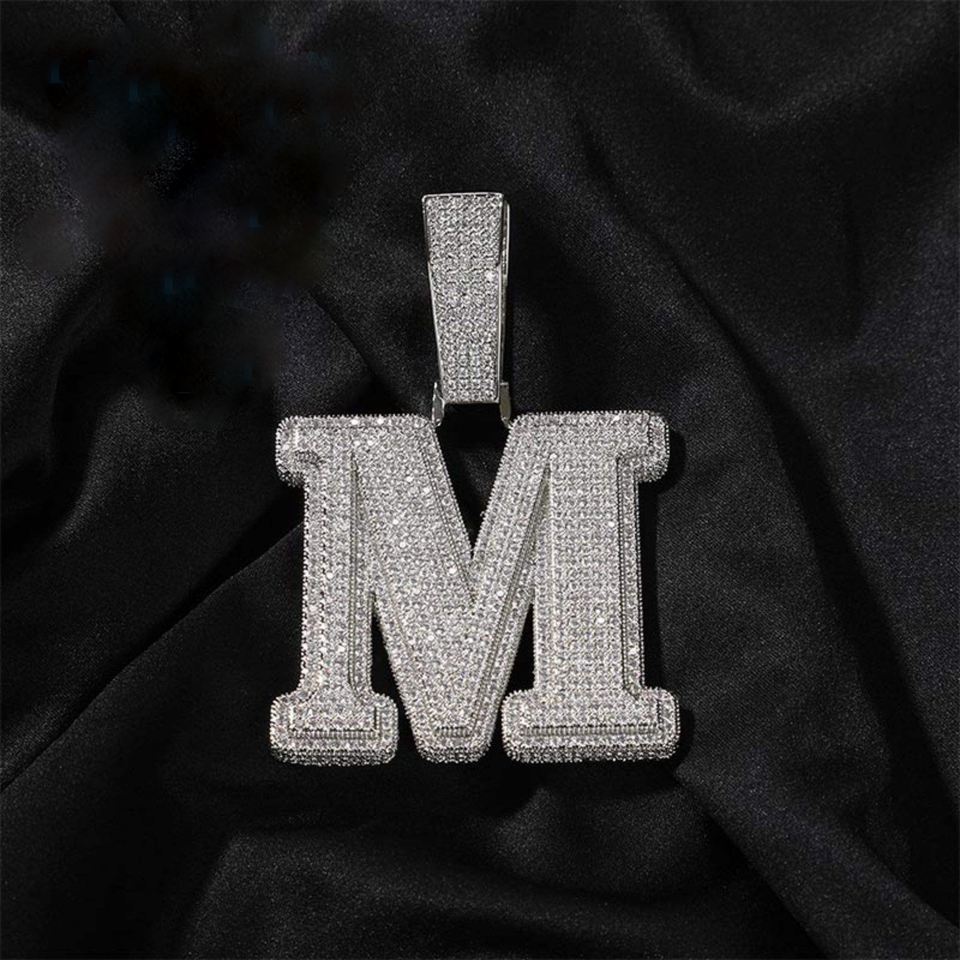เพชรโมอิส925สเตอร์ลิงสีเงินในรูปแบบ M จี้ฮิปฮอปตามสั่งมีตัวอักษรแบบกำหนดเอง