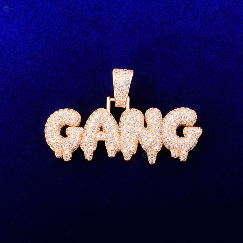 จี้เพชรชื่อสั่งทำแบบ Iced Out เพชรไร้สีเพาะเลี้ยงในห้องปฏิบัติการ จี้รูปทรงแก๊งค์ ชุบทอง สร้อยคอฮิปฮอปแบบหรูหรา