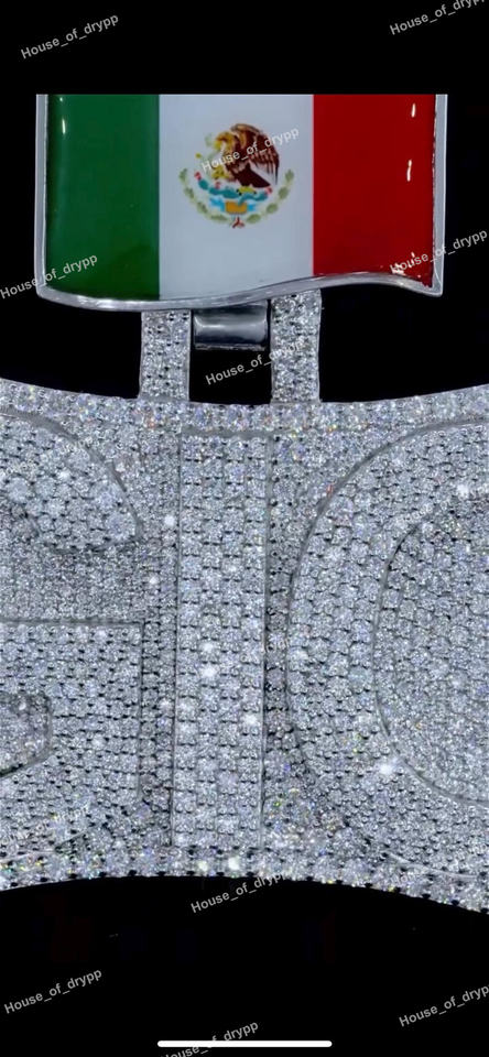จี้ห้อยคอแบบกำหนดเองประดับเพชรโมอิสซาไนต์เงินแท้ 925 ดีไซน์ธงชาติ หรูหราโดดเด่นสำหรับผู้ชาย