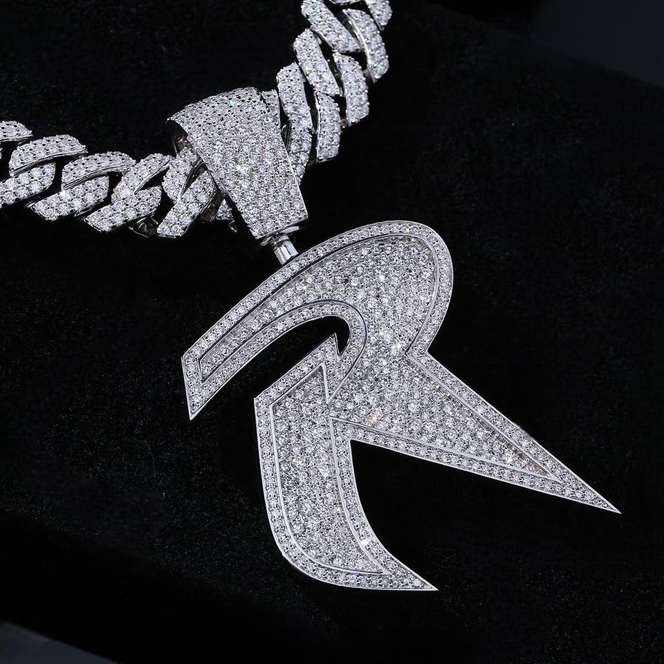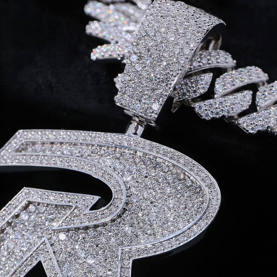 จี้เพชรโมซานไนต์แท้แบบกำหนดเอง ชุบโรเดียมหรูหรา พร้อมตัวอักษรย่อ เงินแท้ 925