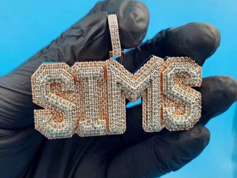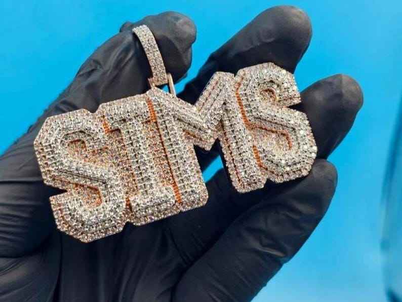 จี้ฮิปฮอปแบบสองสีสั่งทำพิเศษประดับเพชรโมอิสซาไนต์ VVS เงินแท้ 925 พร้อมจี้ตัวอักษรชื่อสำหรับเป็นของขวัญวันเกิด