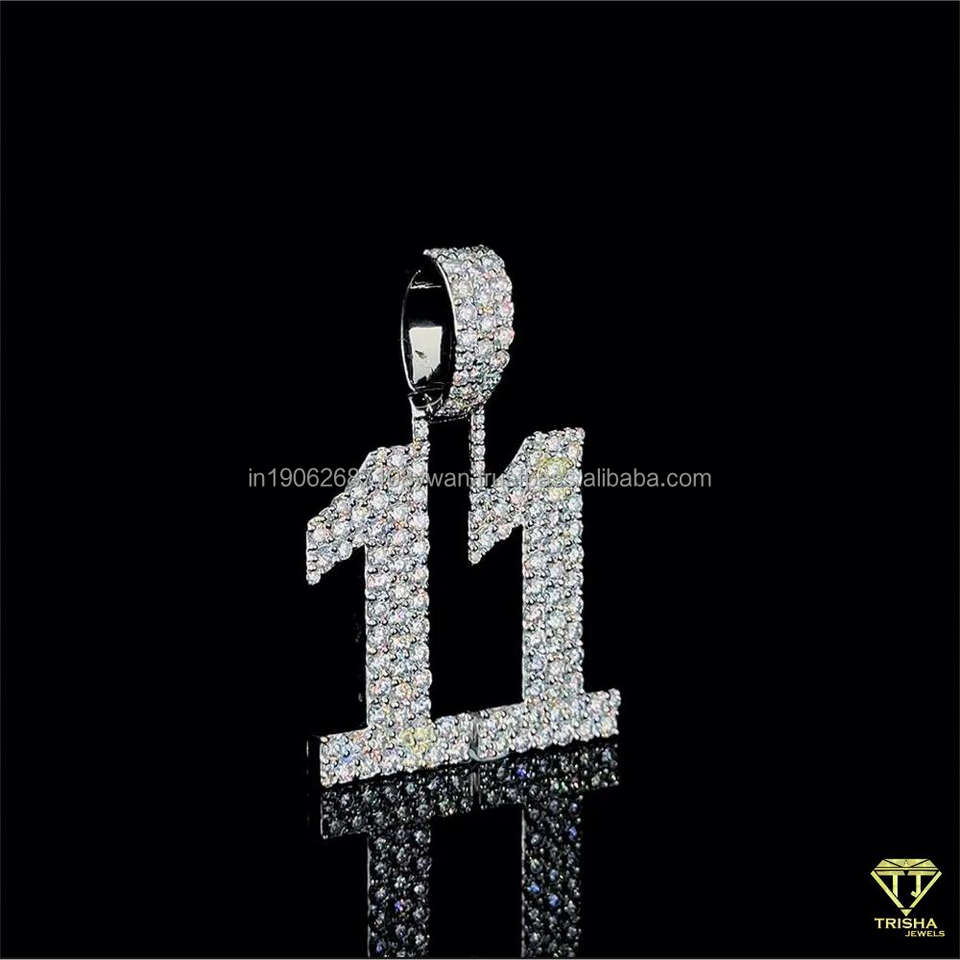 สร้อยคอจี้ตัวเลขสองหลักจากน้ำแข็ง925เงินสเตอร์ลิง VVS Lab ประดับเพชรของขวัญตามต้องการสำหรับผู้ชายผู้หญิง