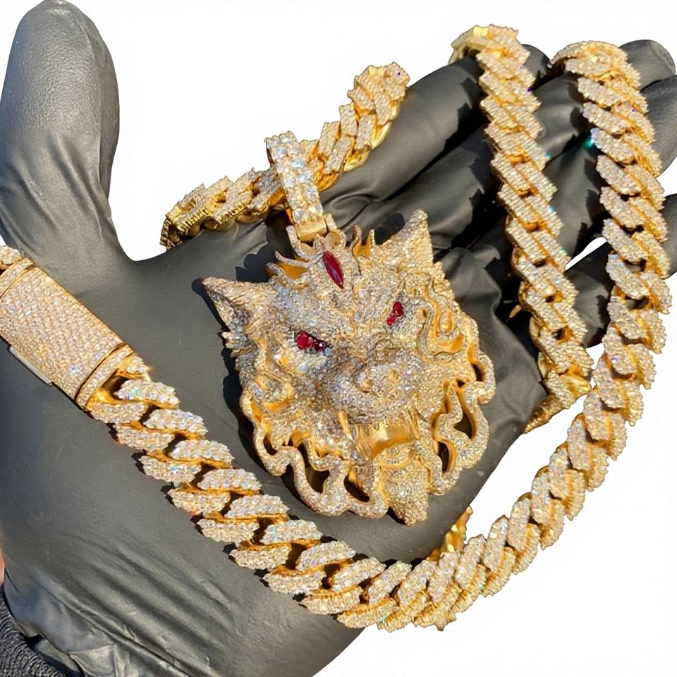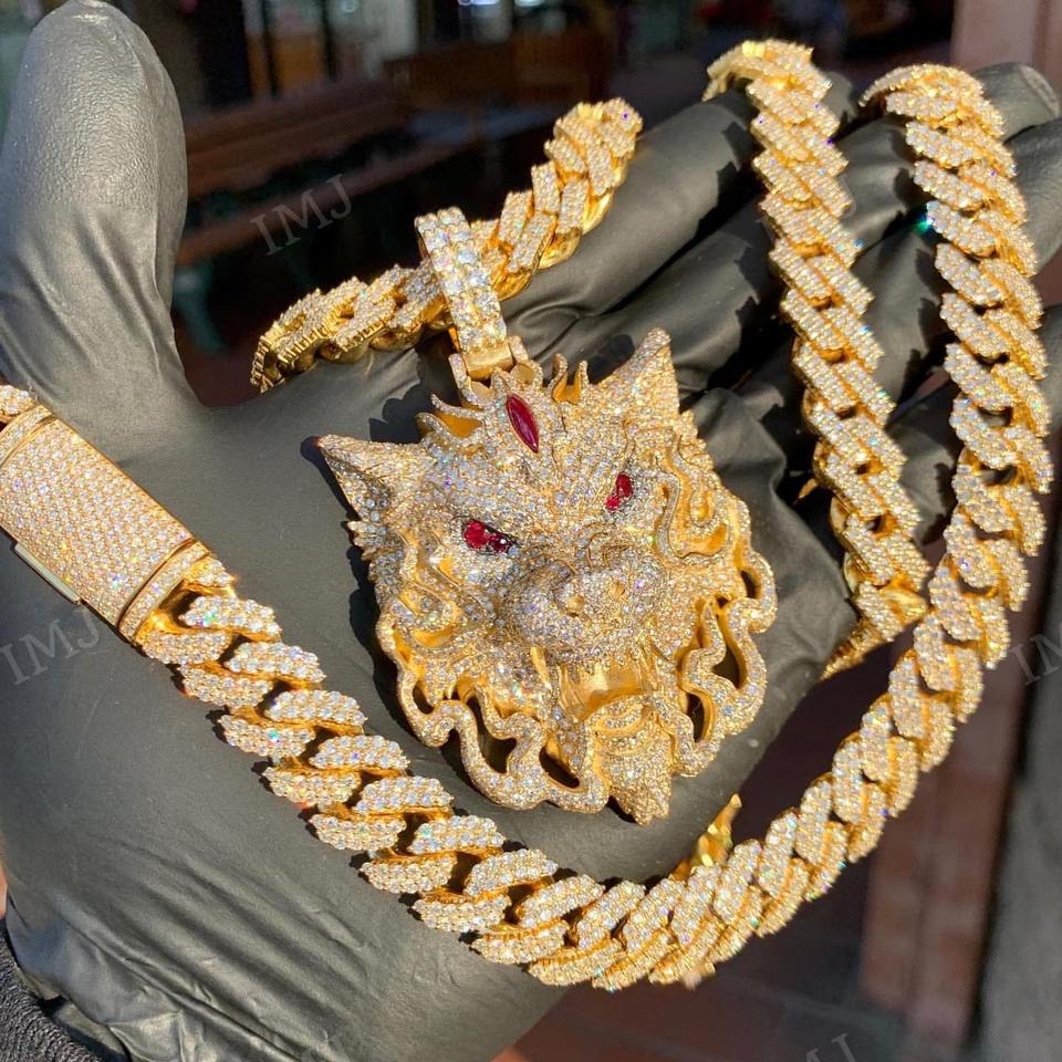 จี้รูปมังกรแบบ Iced Out สไตล์ฮิปฮอป ประดับเพชรโมอิสซาไนต์แท้ เงินแท้ 925 ชุบโรเดียมอย่างดี