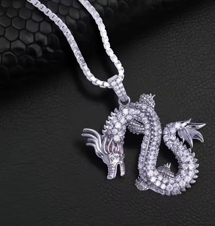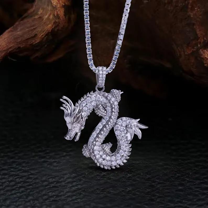 จี้รูปมังกรน้ำแข็ง ประดับเพชรโมอิสซาไนต์ทรงบริลเลียนท์คัท ตัวเรือนเงินแท้ 925 ชุบโรเดียม เครื่องประดับหรูหราสไตล์ฮิปฮอปสำหรับงานปาร์ตี้ ยี่ห้อ HUMERA