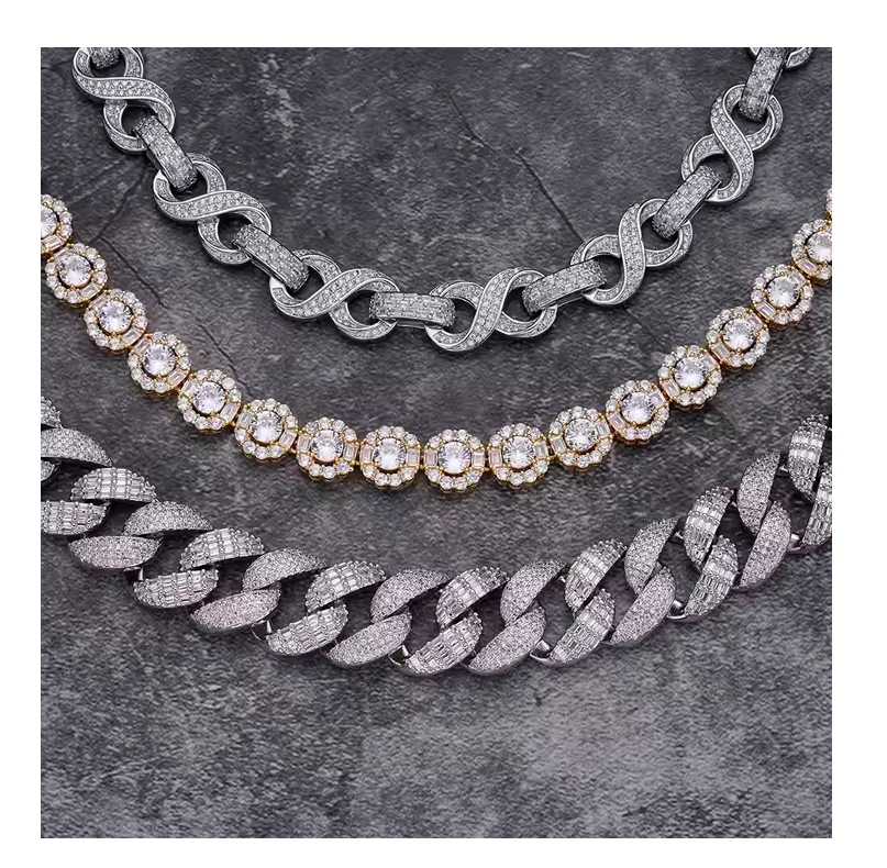 สร้อยคอโมอิสซาไนต์ทรงเหลี่ยมมรกตแบบ Iced Out เครื่องประดับแฟชั่นฮิปฮอป ของขวัญสำหรับผู้ชายและผู้หญิง
