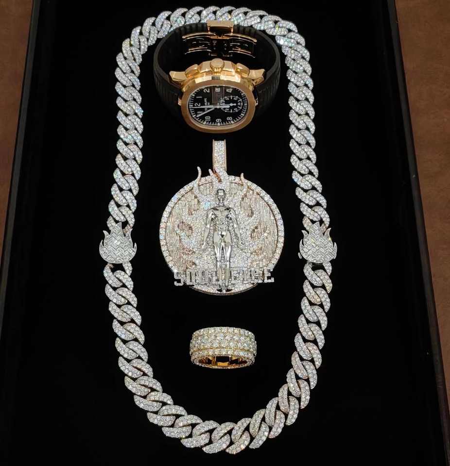 จี้รูปวงกลมประดับเพชรสำหรับผู้ชาย รูปทรงมนุษย์ 3 มิติ สไตล์ฮิปฮอป ประดับด้วยโมอิสซาไนต์ที่ได้รับการรับรองจาก GIA ชุบโรเดียม