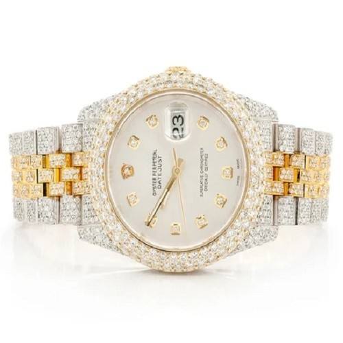 นาฬิกาหรูสำหรับผู้หญิงหน้าปัดเพชรโมอิสสีขาวสองโทนสีขาวและสีเหลืองทำด้วยมือ