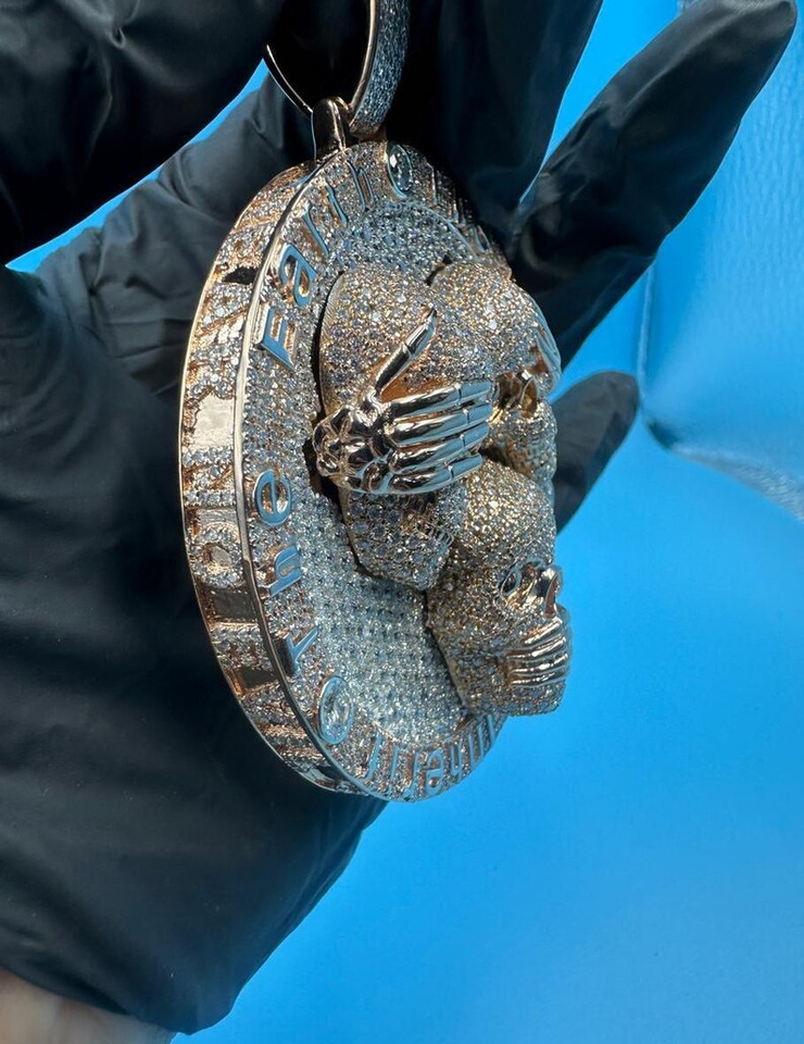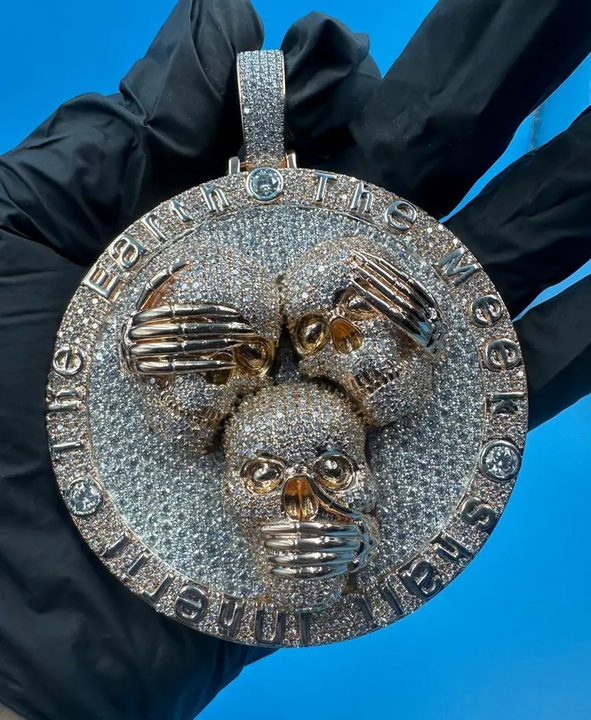 จี้หัวกะโหลก Iced Out ประดับเพชรโมอิสซาไนต์ ดีไซน์ Hip Hop เงินแท้ 925 สื่อความหมาย "ไม่เห็น ไม่ยิน ไม่พูด" สำหรับผู้ชาย