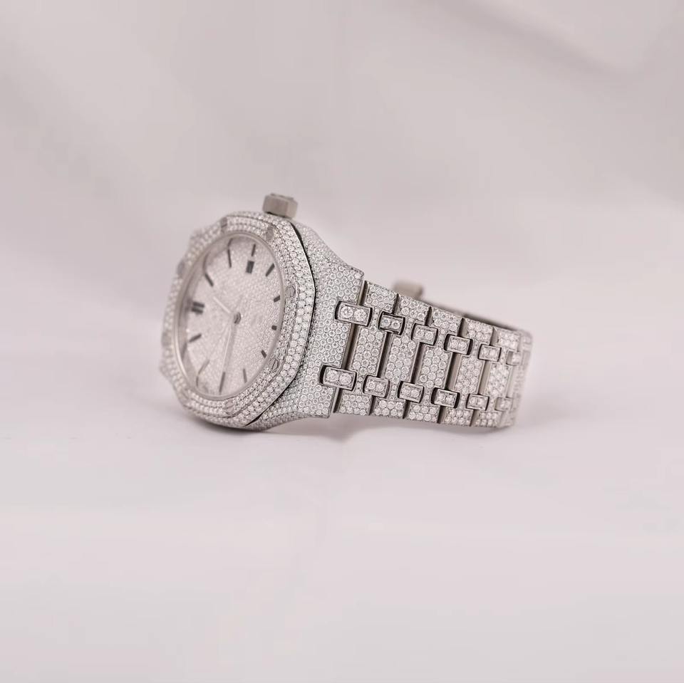 นาฬิกาหรูสไตล์ฮิปฮอปประดับเพชรโมอิสซาไนต์ VVS ระบบกลไก ผ่านการทดสอบเพชร สำหรับผู้ชาย