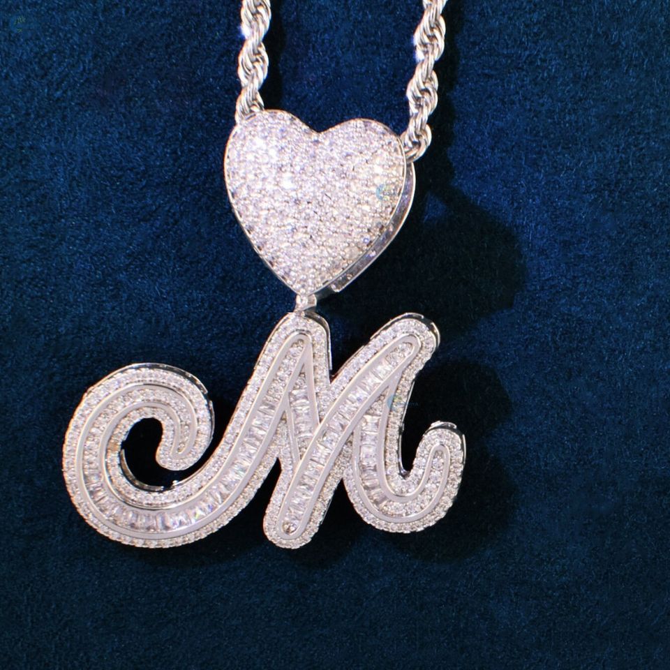 จี้ฮิปฮอปแบบ Iced Out สั่งทำได้ตามตัวอักษรแบบเขียนด้วยลายมือ ประดับเพชรแล็บโกรว์ จี้สำหรับทั้งชายและหญิง จี้หรูหรา ของขวัญสุดพิเศษ