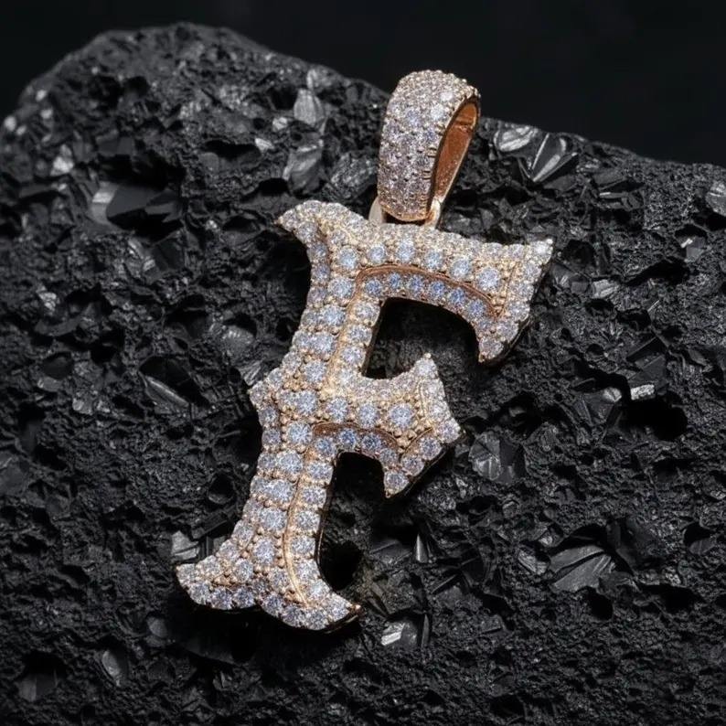 สร้อยคอจี้ตัวอักษร Initial OUT A P | เครื่องประดับฮิปฮอปทำจากทองเหลืองเพทาย CZ ชุบทอง14K ขายส่ง