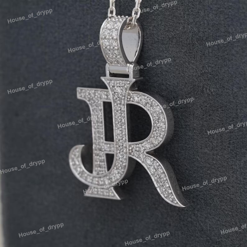 จี้ตัวอักษร JR แบบ Iced Out เงินแท้ 925 สไตล์ฮิปฮอป ประดับเพชร VVS มอยส์ซาไนต์ สำหรับผู้ชายและผู้หญิง