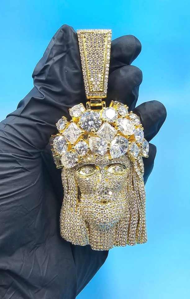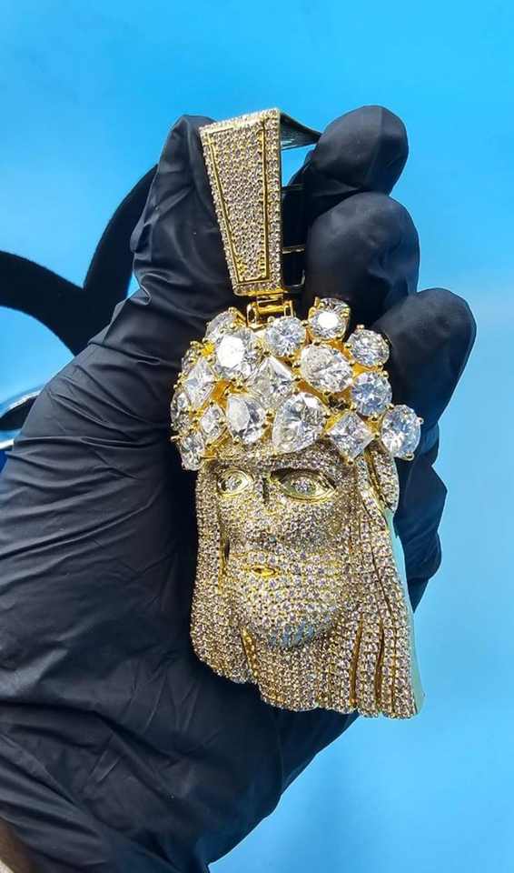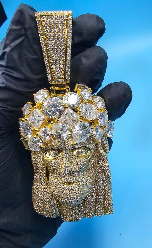 Design: Jesus Face Head And Crown Moissanite Pendant