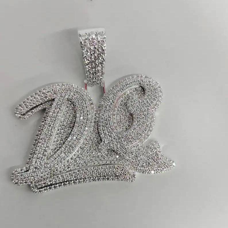 จี้เพชรแบบ Iced Out สั่งทำได้ตามต้องการ พร้อมตัวอักษรชื่อ ทำจากเงินแท้ 925 ประดับเพชร VVS Moissanite สไตล์ฮิปฮอป จี้ตัวอักษร Iced Out
