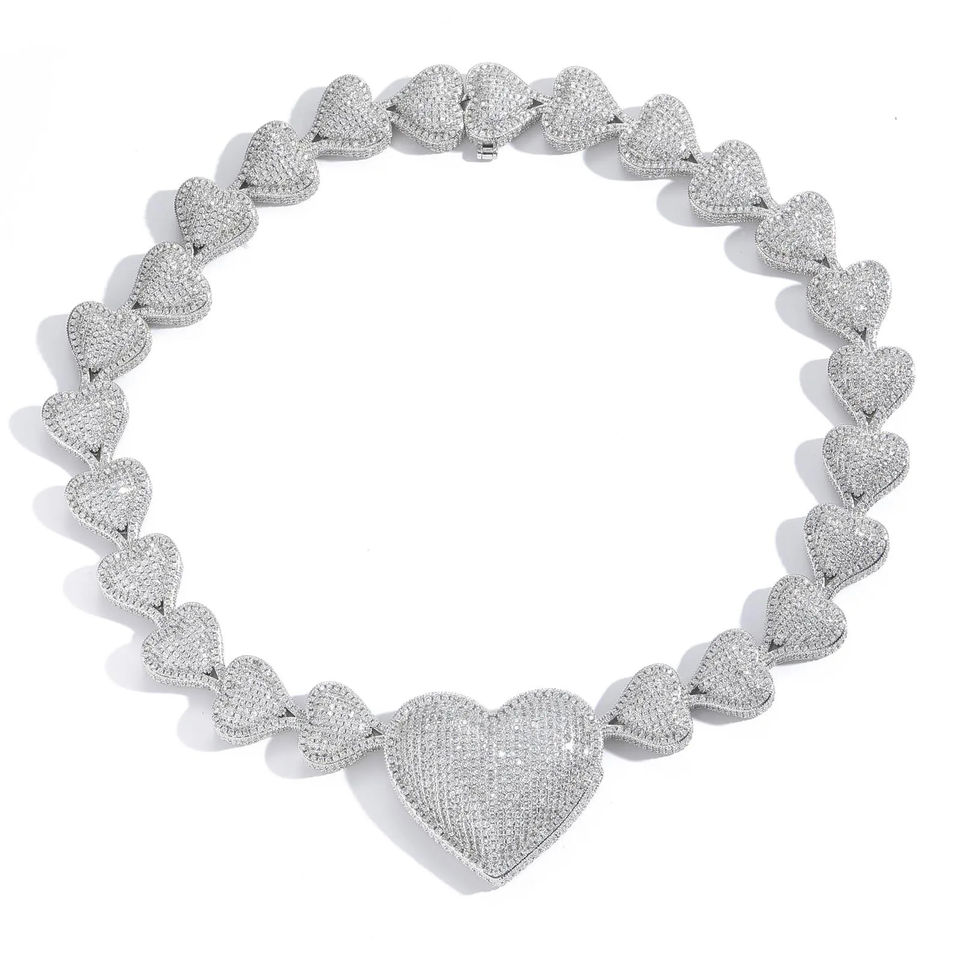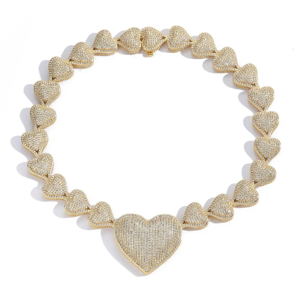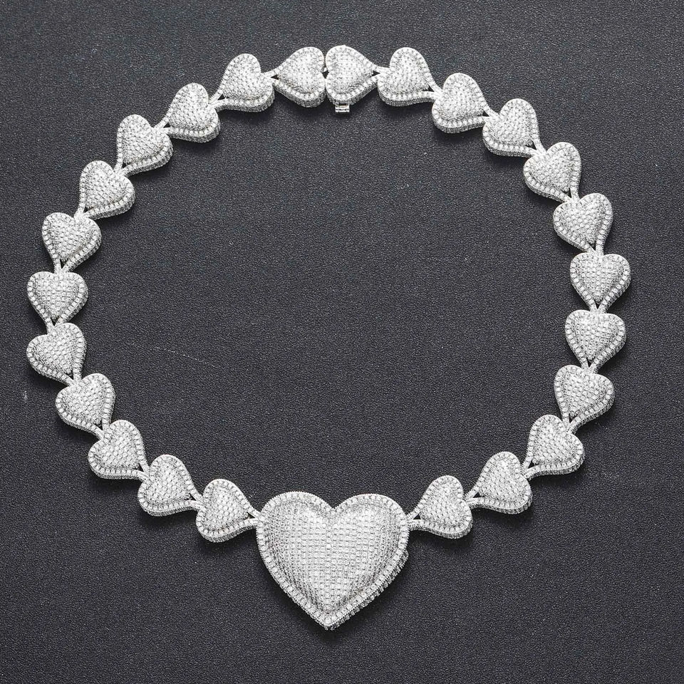 สร้อยคอโมอิสซาไนต์รูปหัวใจขนาดใหญ่เรียบง่ายสำหรับผู้หญิง สร้อยคอรูปหัวใจอินฟินิตี้ ชุบทอง สำหรับผู้หญิง