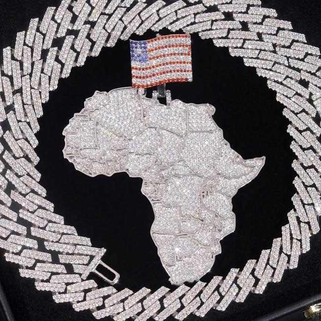 Iced Out Large Africa Map Pendant 925 Sterling Silver Custom Flag Design VVS Moissanite For Men