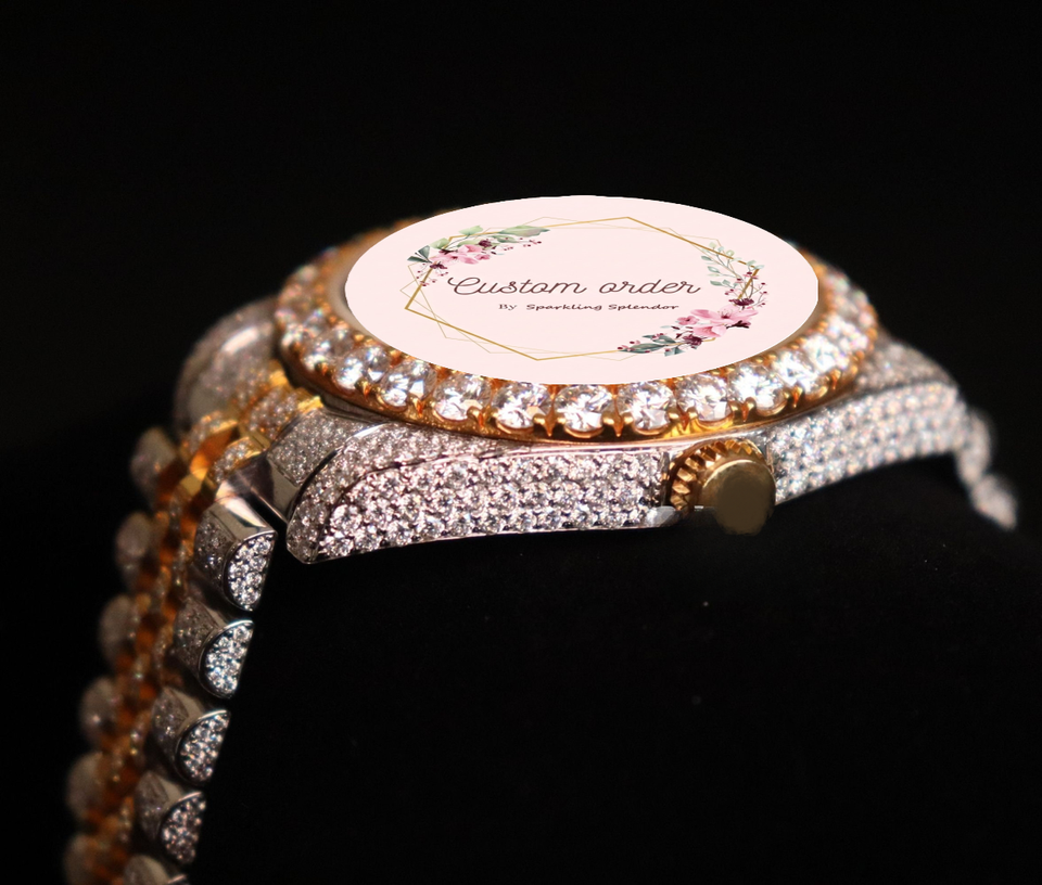 นาฬิกาข้อมืออนาล็อกประดับเพชรโมอิส VVS แบบ Iced Out