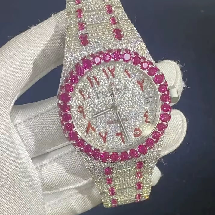 นาฬิกาข้อมือผู้หญิงสุดหรู ประดับเพชรโมอิสซาไนต์ ตัวเรือนสแตนเลสสตีล ระบบกลไก MIYOTA หน้าปัดอะนาล็อก กระจกใส สไตล์ฮิปฮอป แร็ปเปอร์ ระดับไฮเอนด์