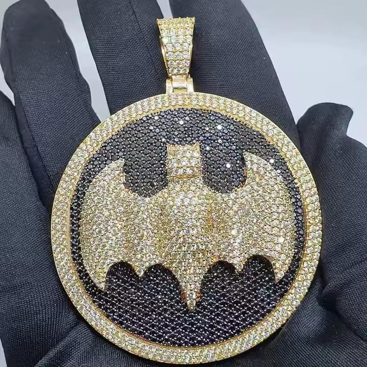 จี้รูปค้างคาวสำหรับผู้ชาย ประดับเพชรคิวบิกเซอร์โคเนียสีดำและสีขาว สไตล์ฮิปฮอป ทำจากเงินแท้ สามารถสั่งทำได้