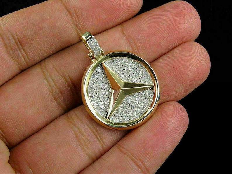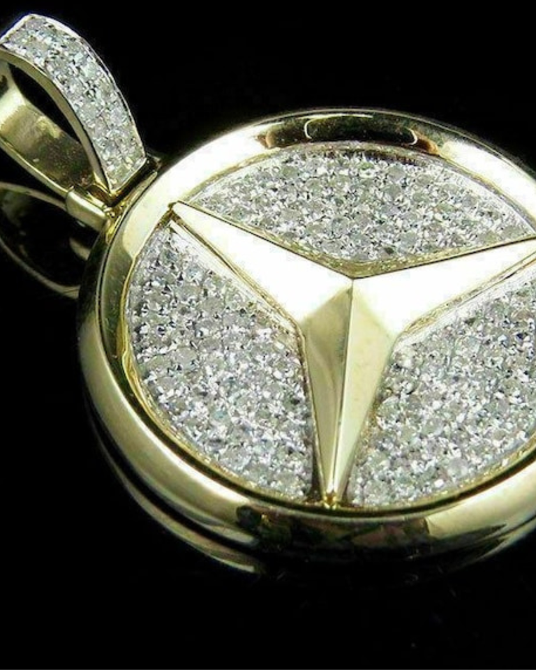 จี้โลโก้ Mercedes แบบ Iced Out สไตล์มินิมอลสุดหรู ประดับด้วยเงินแท้ 925 และเพชรโมอิสซาไนต์ เครื่องประดับฮิปฮอปสำหรับผู้ชาย