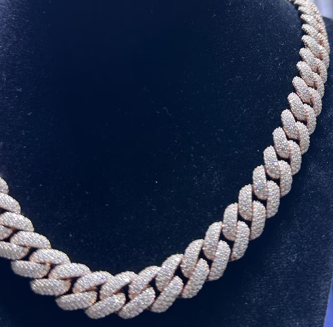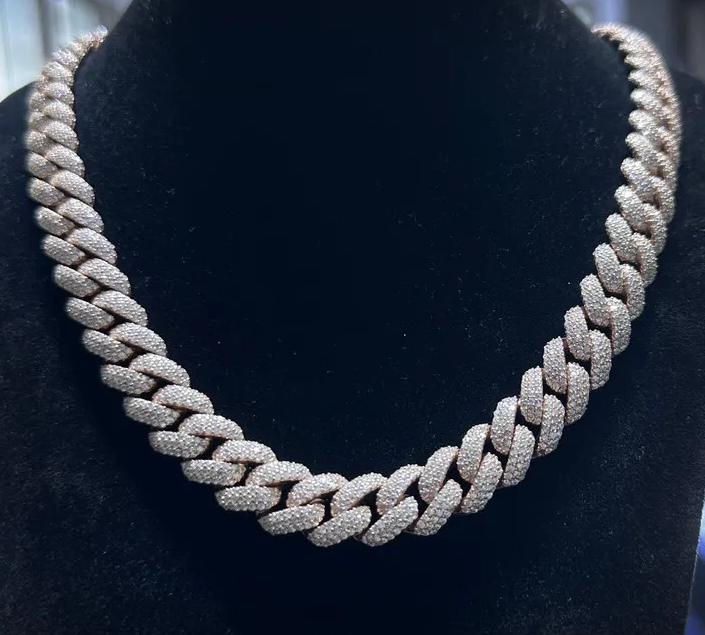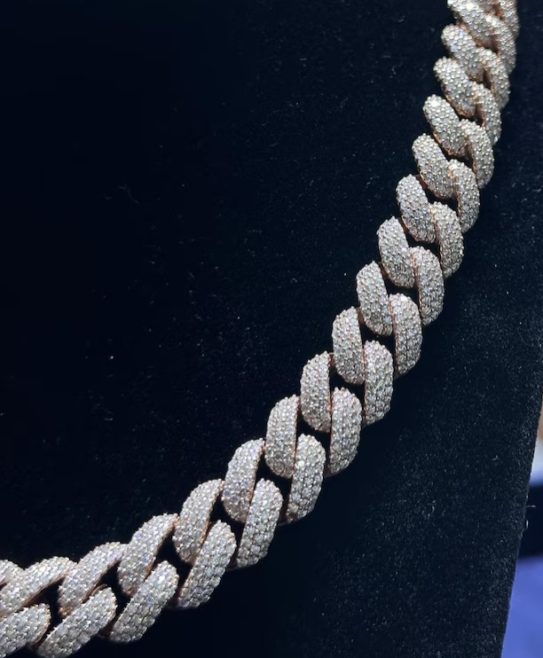 สร้อยคิวบาลิงค์ประดับเพชรโมอิสซาไนต์แบบไอซ์เอาท์ เงินแท้ 925 สร้อยโมอิสซาไนต์