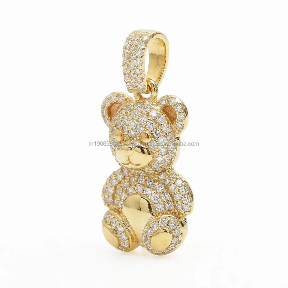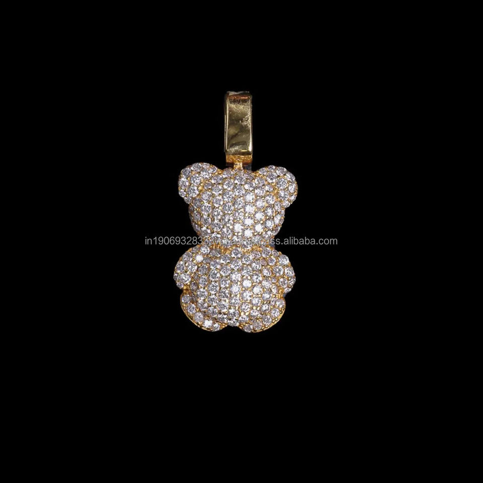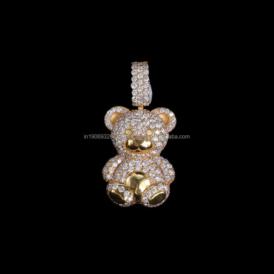 จี้หมีเท็ดดี้ประดับเพชรโมอิสซาไนต์แบบ Iced Out เงินแท้ 925 ชุบโรเดียม สำหรับเป็นของขวัญวันครบรอบ เครื่องประดับฮิปฮอป
