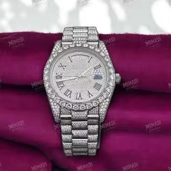 นาฬิกาเพชรมอสซาไนท์สุดสว่างดีไซน์เพรียวบางและงานฝีมือระดับพรีเมี่ยมสำหรับเครื่องประดับสไตล์โมเดิร์นสำหรับผู้ชาย