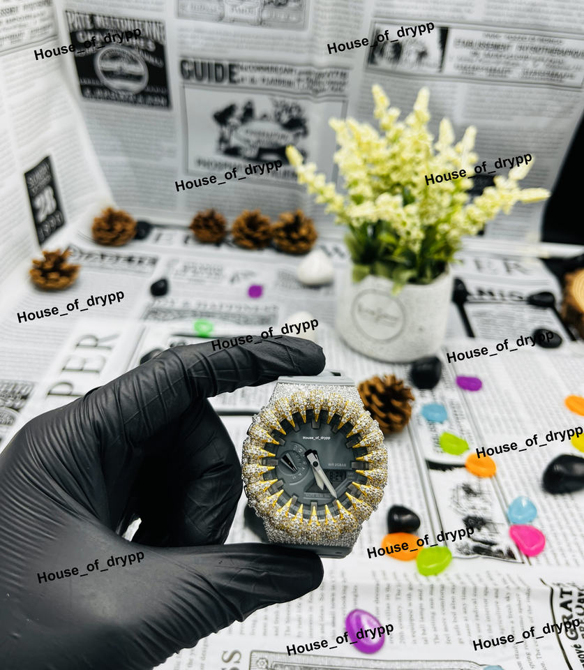 นาฬิกาเพชรโมอิสซาไนต์แบบ Iced Out หน้าปัดสีเทา ขอบหน้าปัดแบบ Silver Spike ดีไซน์โดดเด่น หรูหรา แฟชั่นระดับพรีเมียมสำหรับผู้ชาย