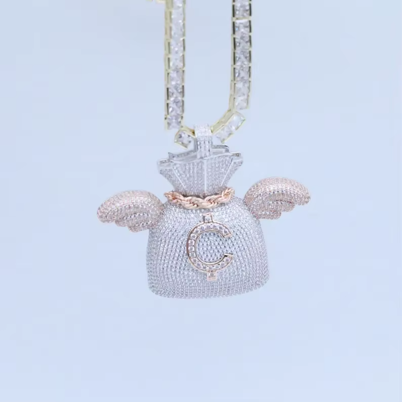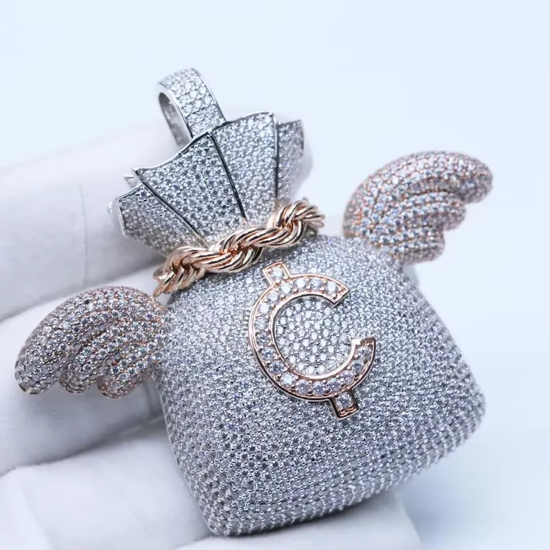 จี้รูปถุงเงินประดับเพชรโมอิสซาไนต์ เงินแท้ 925 ชุบทองคำสีกุหลาบ สไตล์ฮิปฮอป สำหรับผู้ชายและผู้หญิง HUMERA JEWELS