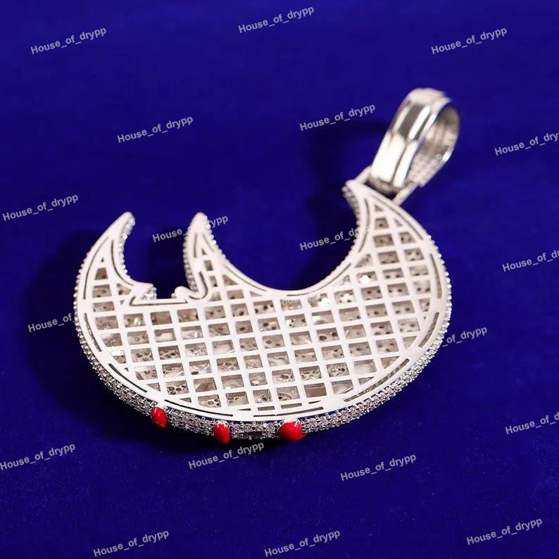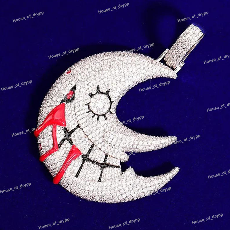 จี้พระจันทร์ประดับเพชรโมอิสซาไนต์เคลือบสีแดง ทำจากเงินแท้ 925 สไตล์ฮิปฮอปสุดหรู