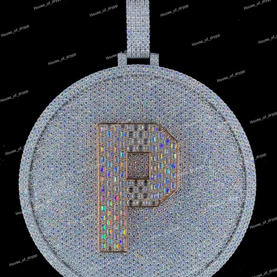 จี้เพชรโมอิสซาไนต์ทรงกลมแบบ Iced Out ตัวอักษร P สไตล์ฮิปฮอปสุดหรู ทำจากสแตนเลส เหมาะสำหรับทั้งชายและหญิง