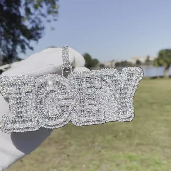 จี้ฮิปฮอปของผู้ชายปรับแต่งได้พร้อมบาแกตต์โมอิสซาไนท์สร้อยคอทองเหลืองมีจำหน่ายในราคา