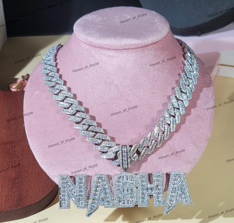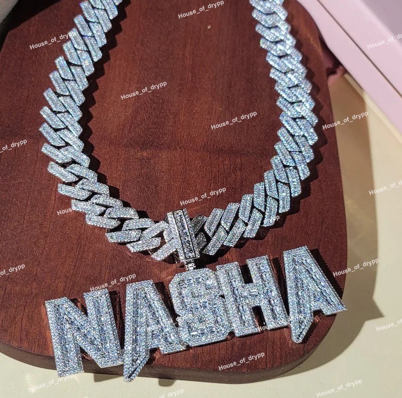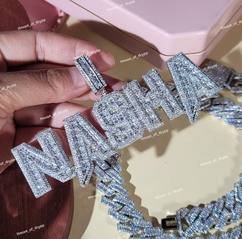 จี้ชื่อแบบสั่งทำประดับเพชรโมอิสซาไนต์ VVS เงินแท้ 925 สร้อยคิวบาลิงค์ สไตล์ฮิปฮอป