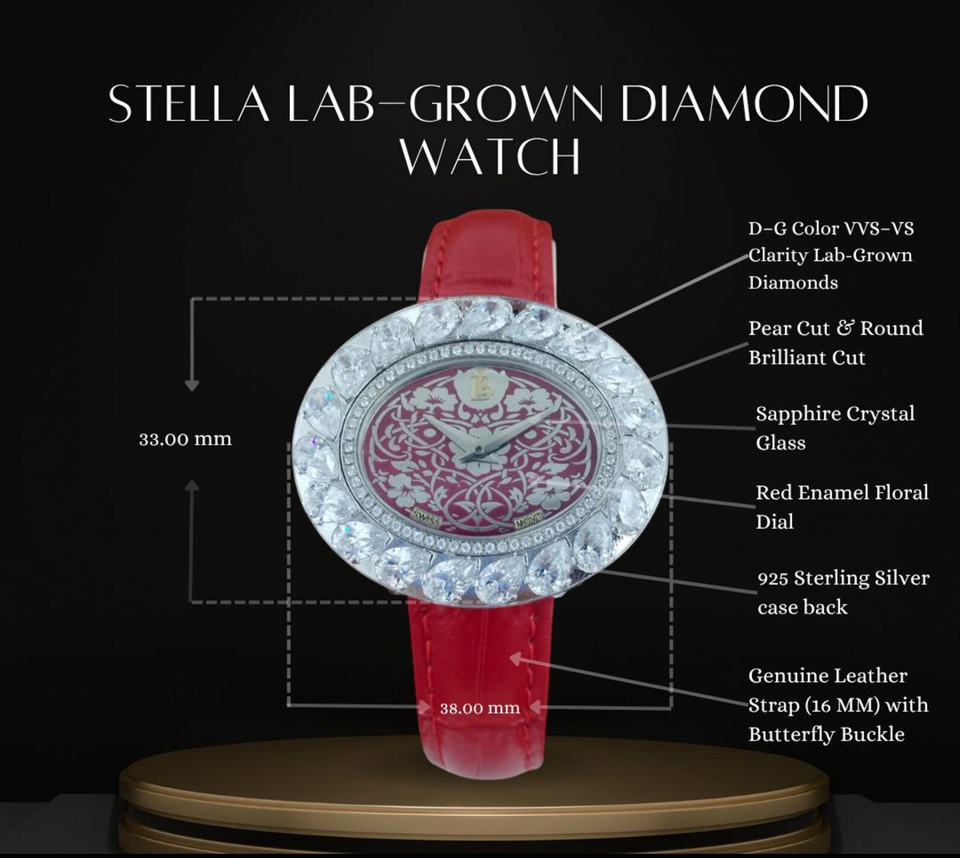 นาฬิกาเพชรเลี้ยงในห้องปฏิบัติการหน้าปัดสีแดงแบบ Iced Out | นาฬิกาหรูหราประดับเพชรเงินสเตอร์ลิง | สายนาฬิกาแฟชั่นโบราณขนาด 20 มม. สำหรับผู้ชายและทุกเพศ