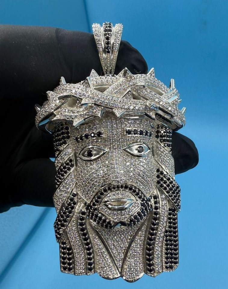 จี้พระเยซูประดับเพชรโมอิสซาไนต์สีดำและสีขาวทรงกลม ทำจากเงินแท้ 925 เครื่องประดับชั้นดี